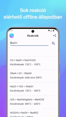 A Kémia alkalmazás kémiai reakciók keresésére és egyenletek megoldására alkalmas, ismeretlen változókkal is. Tartalmazza a periódusos táblázatot, oldhatósági táblázatot és moláris tömeg kalkulátort. Segít a szerves és szervetlen kémiai feladatokban, akár képletek rajzolásával is. Mindig kéznél van a kémiai tudás.