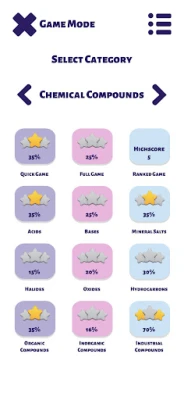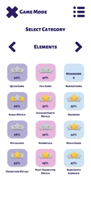 A játékmenet változatos lehetőségeket kínál, hogy minden felhasználó megtalálja a számára ideális tanulási formát. Gyors kvízekkel tesztelheti tudását rövid idő alatt, míg az átfogó felmérések az elemek és komplex vegyületek széles skáláját fedik le. Versenyszellemét próbára teheti a rangsorolt játékban, ahol megmérkőzhet más kémia rajongókkal, és folyamatosan fejlődhet. Speciális kategóriák, mint a savak, bázisok, ásványi sók, halogenidek, oxidok és szénhidrogének, mélyebb betekintést engednek a szerves, szervetlen és ipari kémia világába. A kategóriák sora az alkálifémektől a nemesgázokon át a ritkaföldfémekig terjed, garantálva, hogy a Mendelejev-táblázat minden szegmensét meghódíthassa.